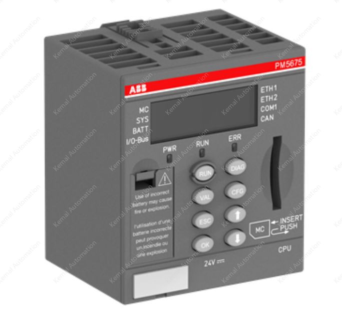 PM5675-2ETH: AC500 Processor module. Memory 160MB. Interfaces: 2x Ethernet, RS232/485, CAN. 8GB Flashdisk. Display.Invoice Description:Processor module. Memory 160MB. Interfaces: 2x Ethernet, RS232/485, CAN. 8GB Flashdisk. Display (PM5675-2ETH)Made To Order:NoMinimum Order Quantity:1 pieceOrder Multiple:1 pieceSelling Unit of Measure:piece