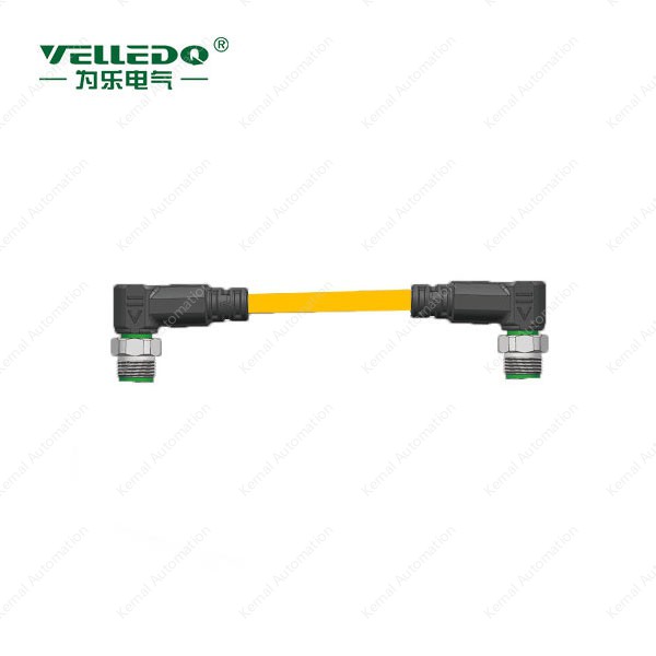 Double-ended M12 pre-cast 5-pin bend with 2m solder mask orange wire